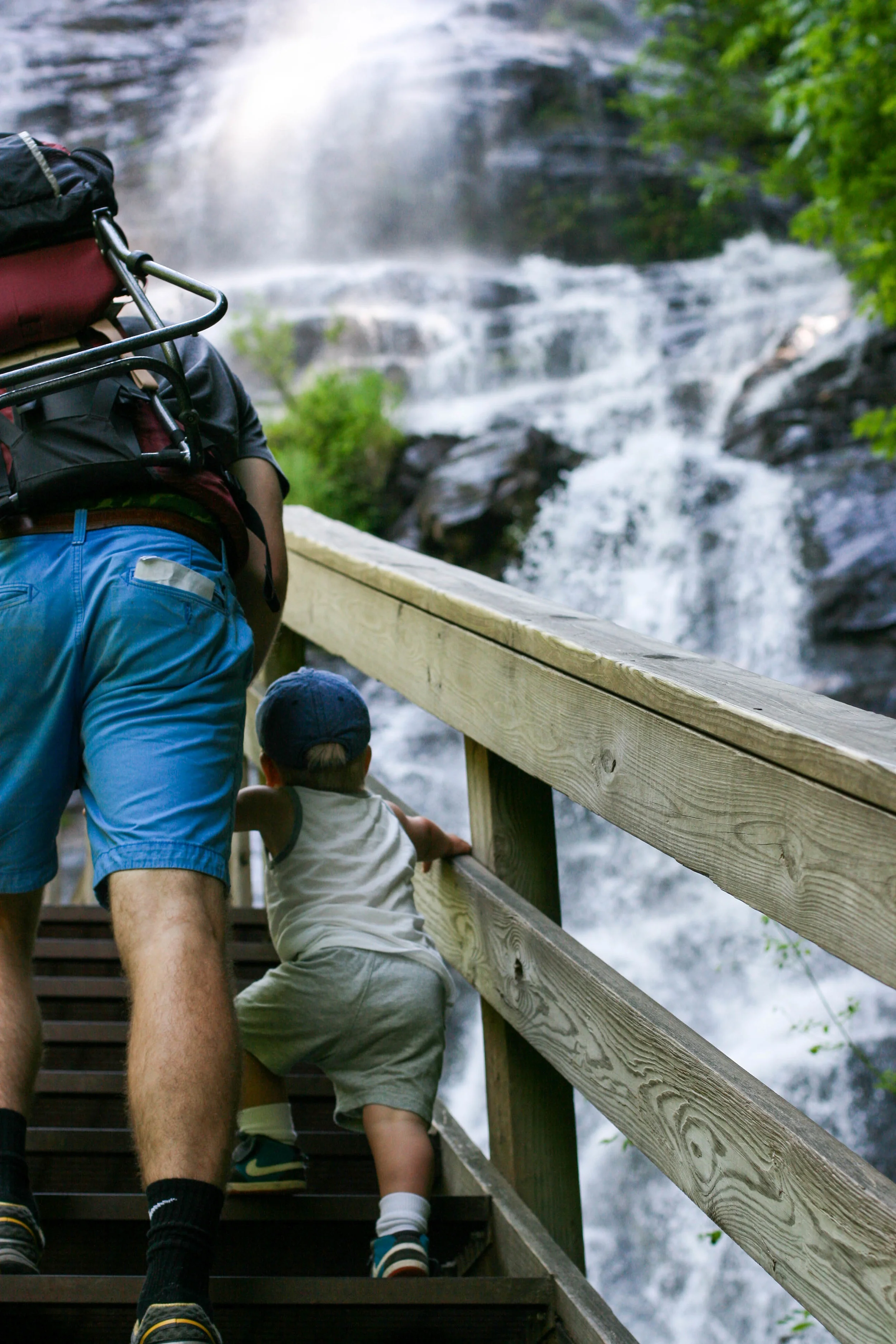 Ascending to the top of Amicalola Falls is no simple feat. This 729-foot waterfall is nestled atop a cliff in the southern Appalachian Mountains, and is considered the southeast's tallest cascading waterfall. While my little family was enjoying a mountain getaway in Ellijay last weekend, we decided to hike up to the Falls that I had previously heard so much about. I knew it would be strenuous, especially with a toddler in tow, but we were just crazy/enthusiastic/high on mountain air to gleefully attempt such a feat. And while it was obviously worth is and totally beautiful, I will say that it wasn't easy. Okay, it was downright hard. There, I said it.