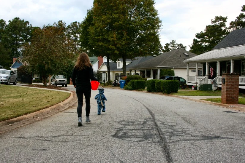 We rode our golf cart a few neighborhoods over where the houses aren't decorated too scary and the sweet neighbors wait on the porch with candy. We like to go extra early, because I don't want to expose Everett to anything too scary. This little Halloween tradition has been in our family over the past few years, with all of Everett's local cousins. And friends, too!