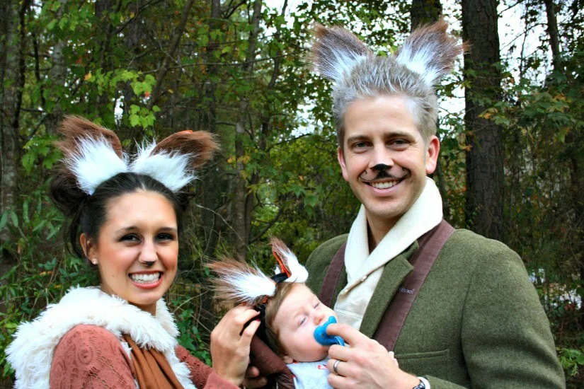 I made our ears and tails by (loosely) following this amazing tutorial. Gosh Pinterest is full of so many goodies when it comes to costume creation. I'll admit that as the countdown to Halloween was impending and I was still unshowered, teeth unbrushed and haphazardly choking on faux fur, I might have resorted to just stapling our bits of tail parts together. Forgoing the much studier hot glue situation. Oh well, it all worked. Other than Everett loathed his ears, so they only lasted for the pictures. And only a few of them.