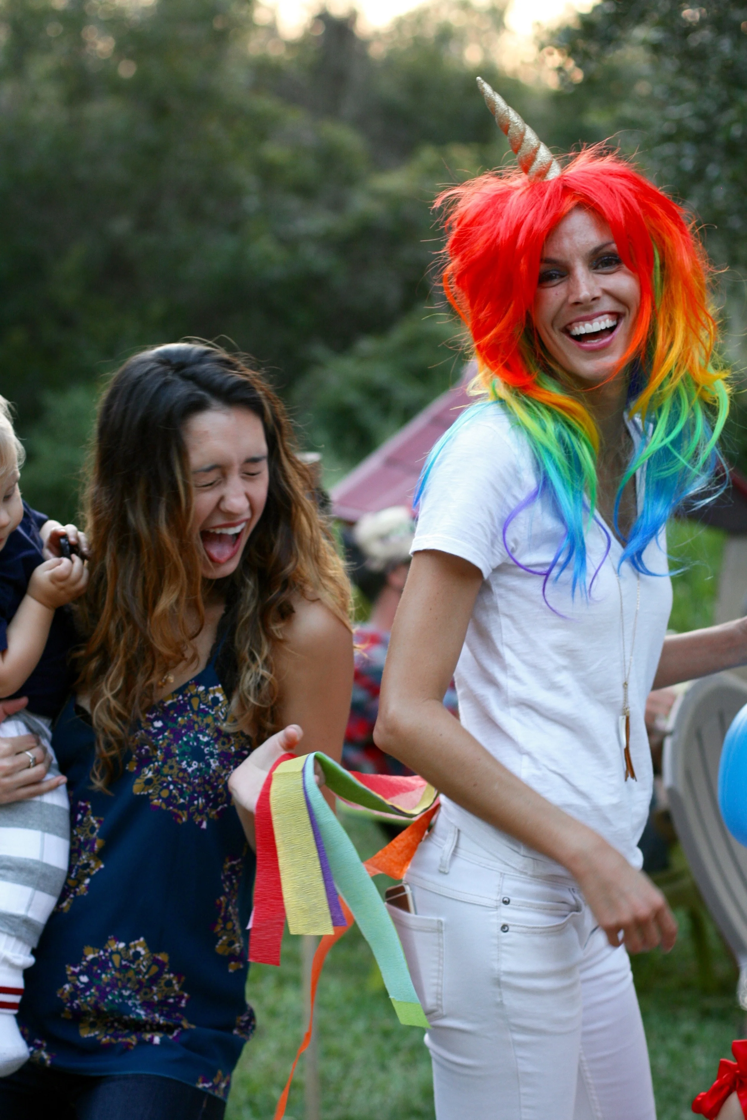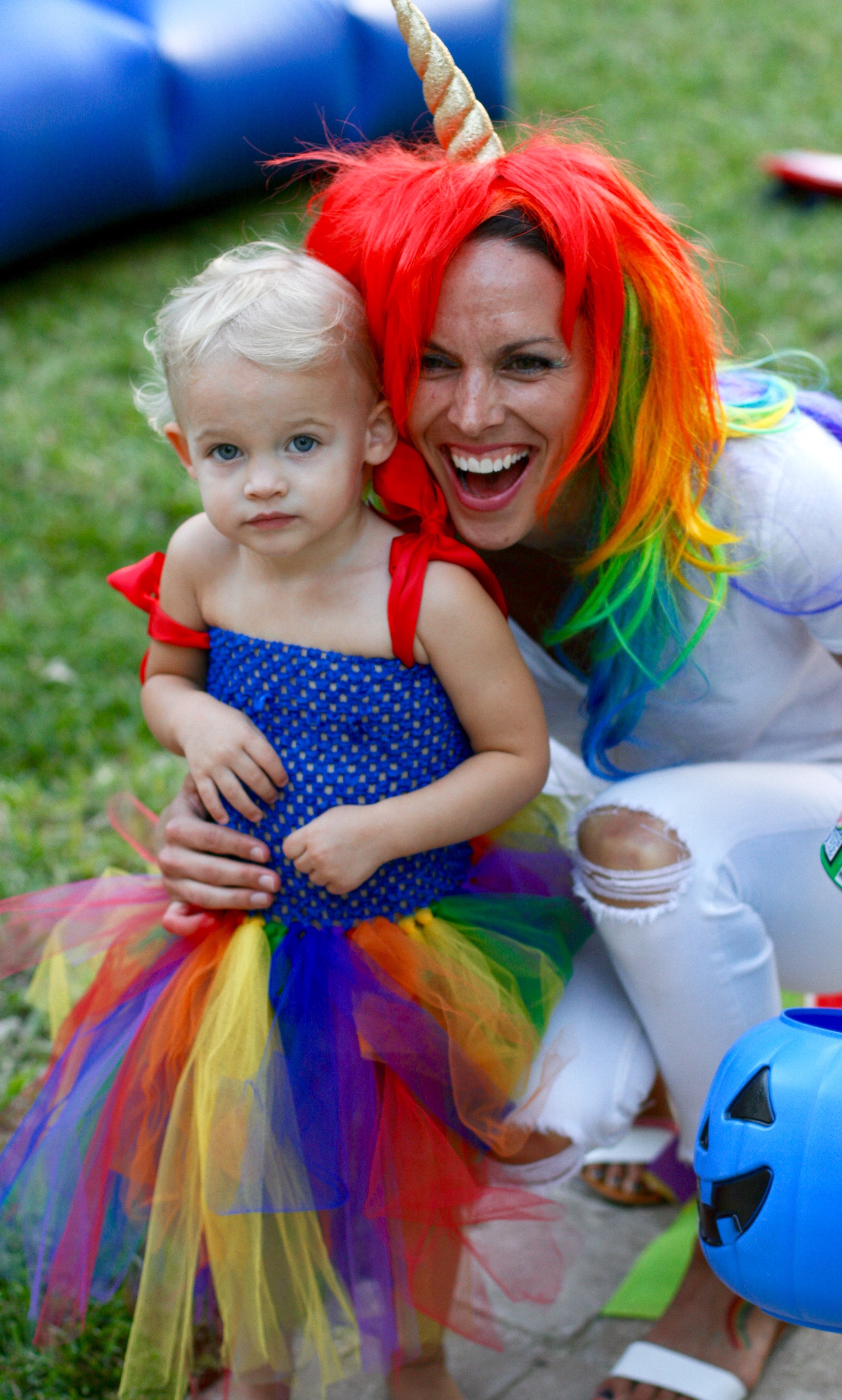 My sister knows how to party. She dressed up her daughter the birthday girl as Star Bright, and she was Star Light (Star Bright's mom I think? I'm not up on my unicorn fanfare). I was completely lame this year and sort of forgot about costuming me and Stevie - oops! There's been a lot going on! But Everett went as a little fish. To be honest, he wasn't really that into it either. I think he was mesmerized by his Auntie Star Light, to be honest. Okay, I was a little too. I mean. LOOK AT HER.