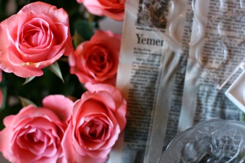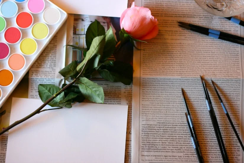 I laid down newspaper, set out my paint set & brushes, fetched a bit of water, and snagged some flowers for inspiration. When I say "snagged", I mean it. They weren't my flowers. They were my mom's from my dad. Side note, no matter how old you are, it just warms your heart from the inside out to know that daddy bought flowers for your mommy. Sigh.
