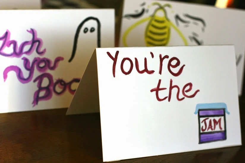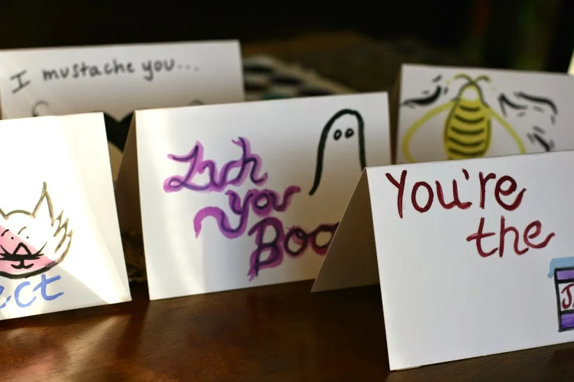 I'll admit it. We know how to party. We made my new favorite granny beverage, turned on some French Cafe Pandora and went to town on our feelings. And I've got the heartfelt cards to prove it. Okay, you could have basically done exactly what I did with a set of Sharpie markers from Walgreens, but just so you know, they are all hand-painted with watercolors. So there.