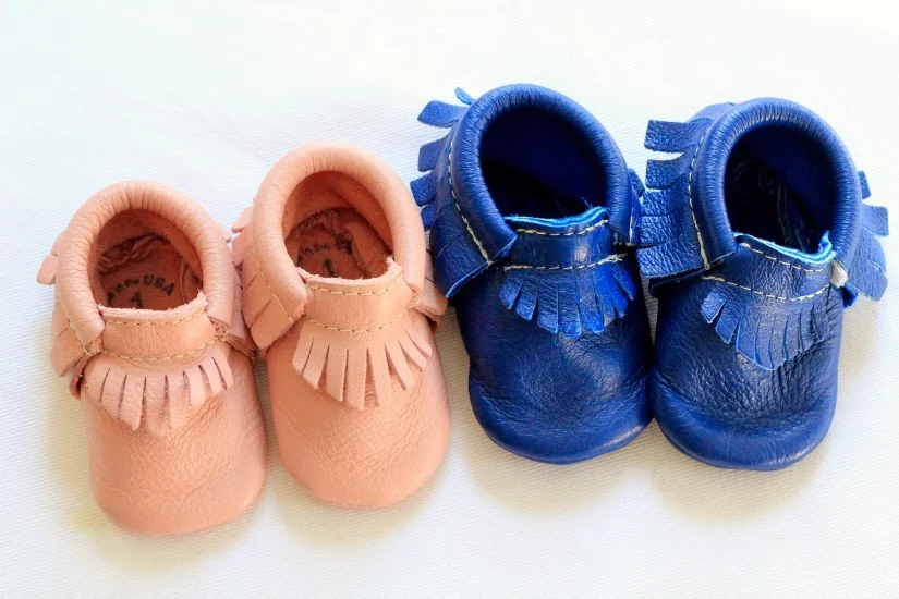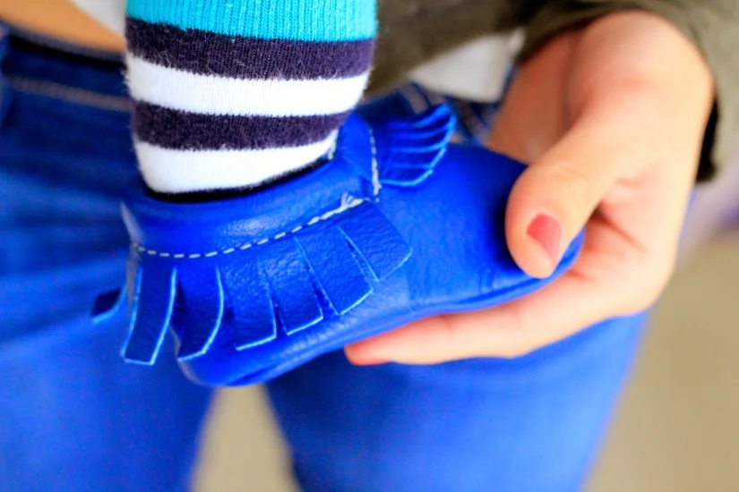 // Some couples wear their matchy-matchy Chuck Taylors. Some couples simultaneously rock the Nikes. I once wore matching Vans with my skater boyfriend (yes I was in 7th grade, and yes, I still regret not keeping those rad sneaks.) But these two? Well, they're little moccasin wearers. And by little I mean that they are 6 weeks a part in age and my son is wearing shoes two sizes bigger than her. No big deal. Mom loves him. //