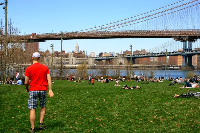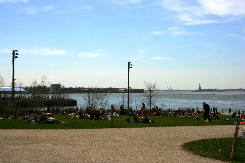 After walking across the bridge we wandered even further south to the waterfront, through Battery Park, and then wound our way up to Hudson Eats at Brookfield Place. We needed to rest our feet, so we grabbed some drinks and stretched out on the lawn for a bit. This is the perfect spot to take in views of the Statue of Liberty, although if you really want to get up close and personal, you can jump on a free ferry ride down to Staten Island to get a bit closer to Lady Liberty (we did that here).