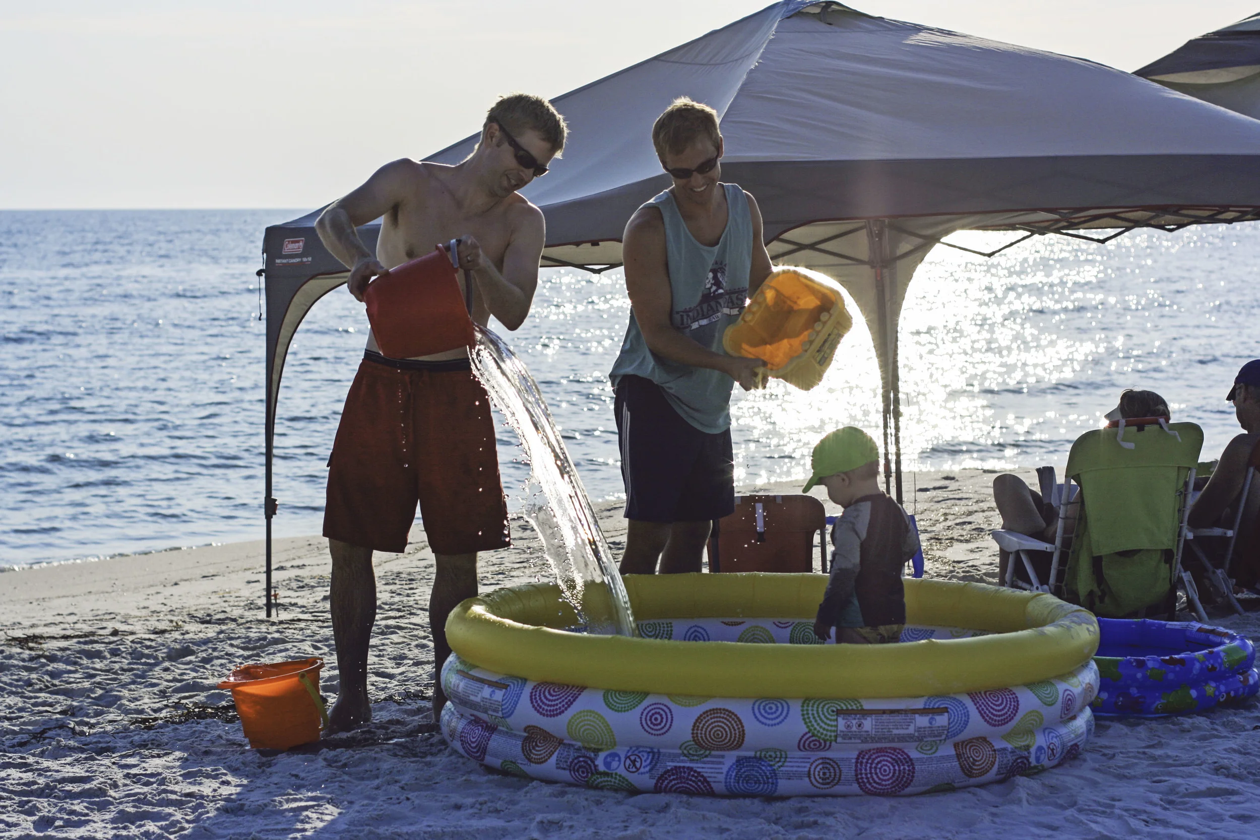 A baby pool on the beach is SO the way to go, you guys. Endless hours of fun to be had.
