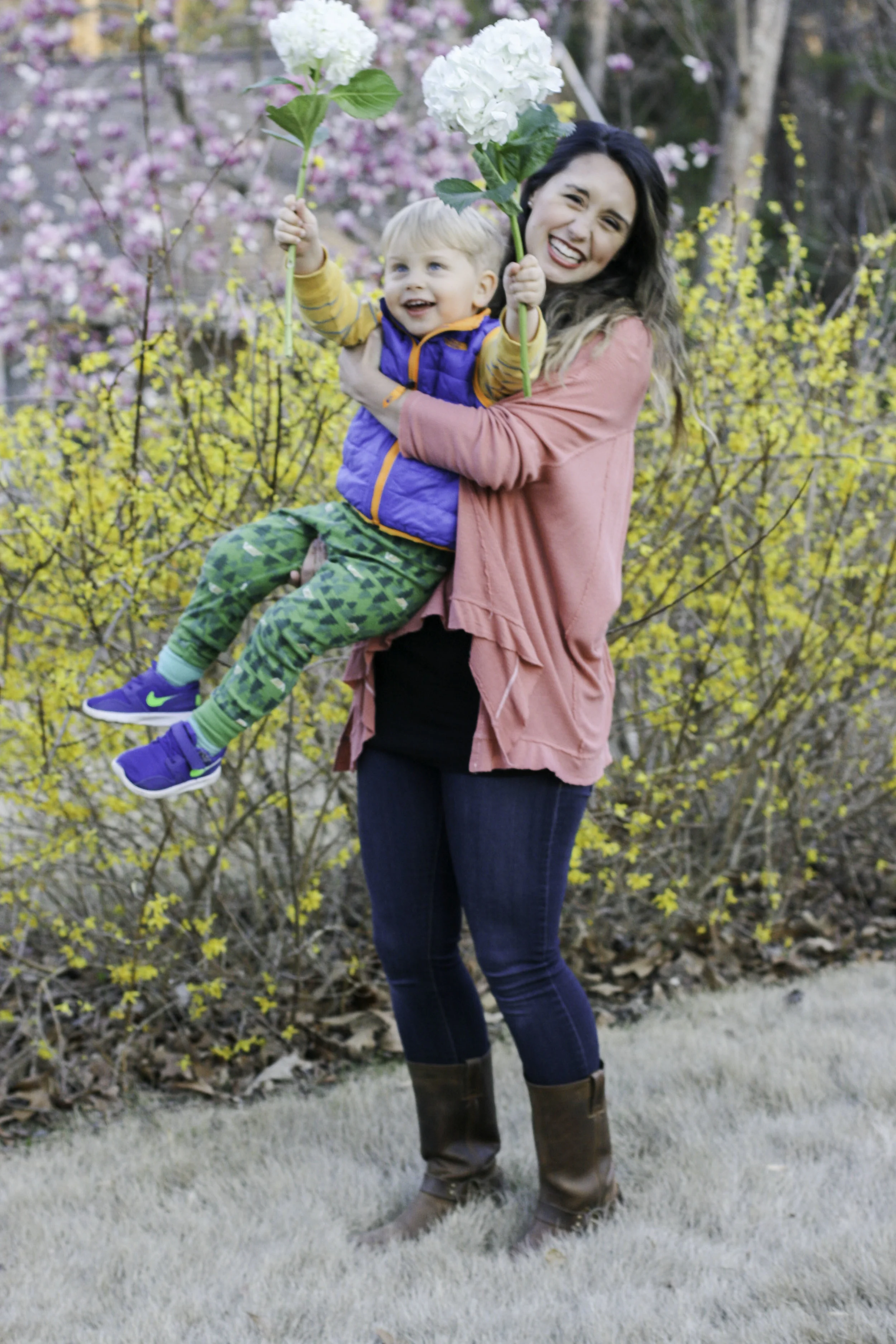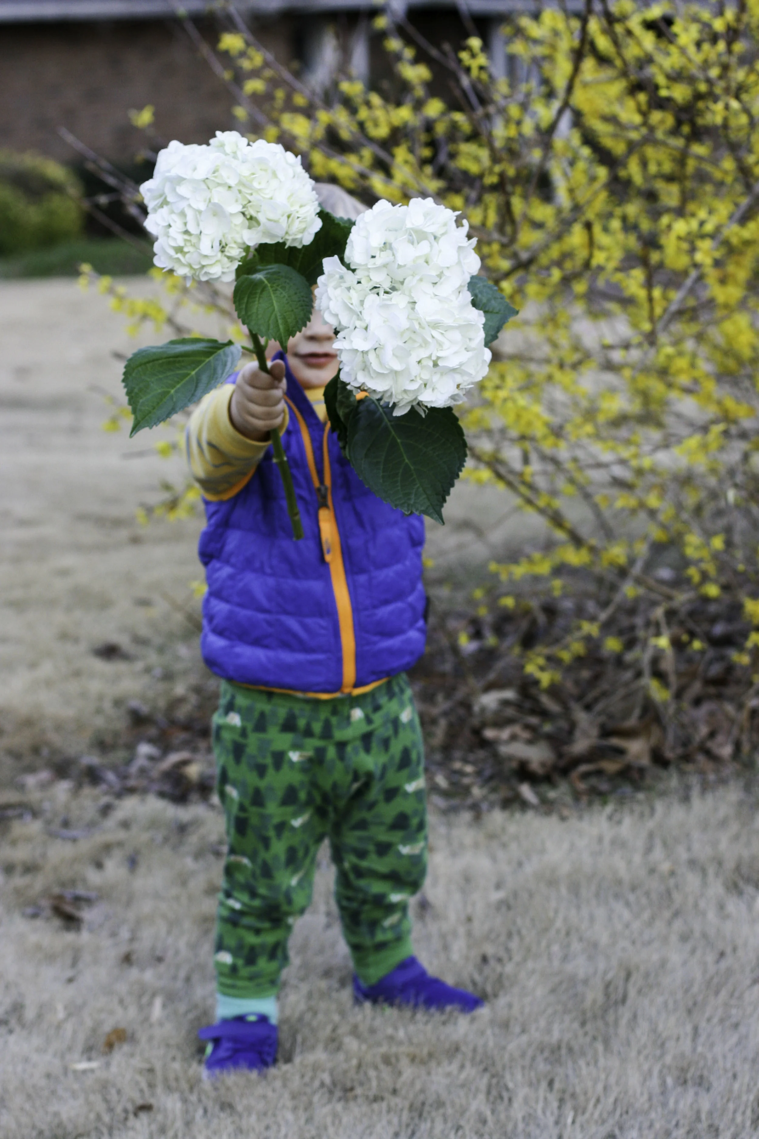 This little guy makes me laugh so hard. He went to the store with his dad to pick out these flowers for me - and what a great choice! I love hydrangeas! Of course, this was all after his nap, which is why he is wearing pajamas bottoms. I just love him to pieces. He's seriously the funniest person and the things that come out of his mouth these days astound us. "You're my valentine, mom. And my teacher. " - what he told me when I picked him up from school yesterday.