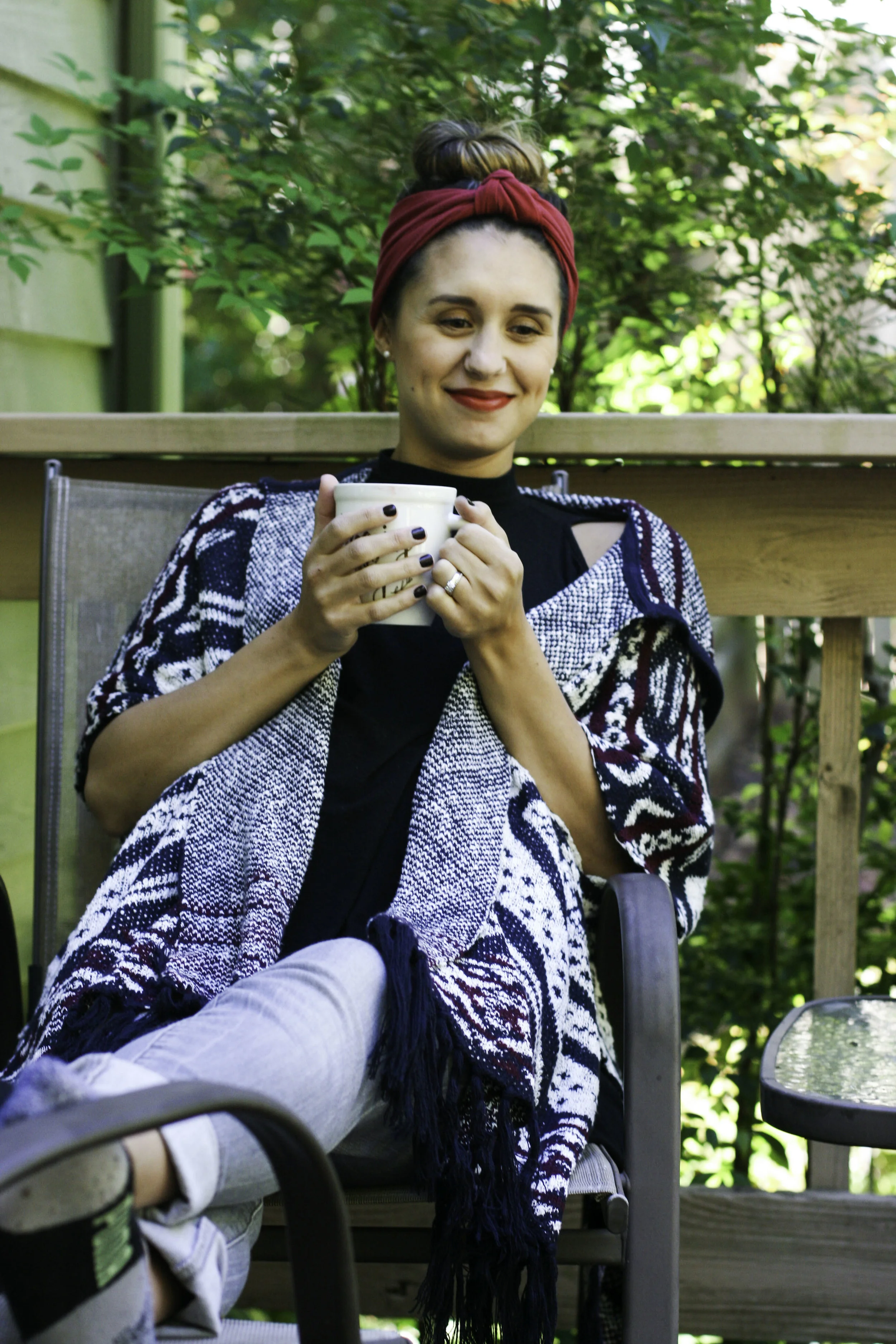 ASOS Cold Shoulder Top, Gap Maternity Jeans, Forever 21 Kimono, Rocco + Norah Mama Turban in Napa (c/o)