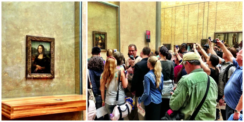 // The insane crowd surrounding a serene, sarcastic Mona Lisa. //