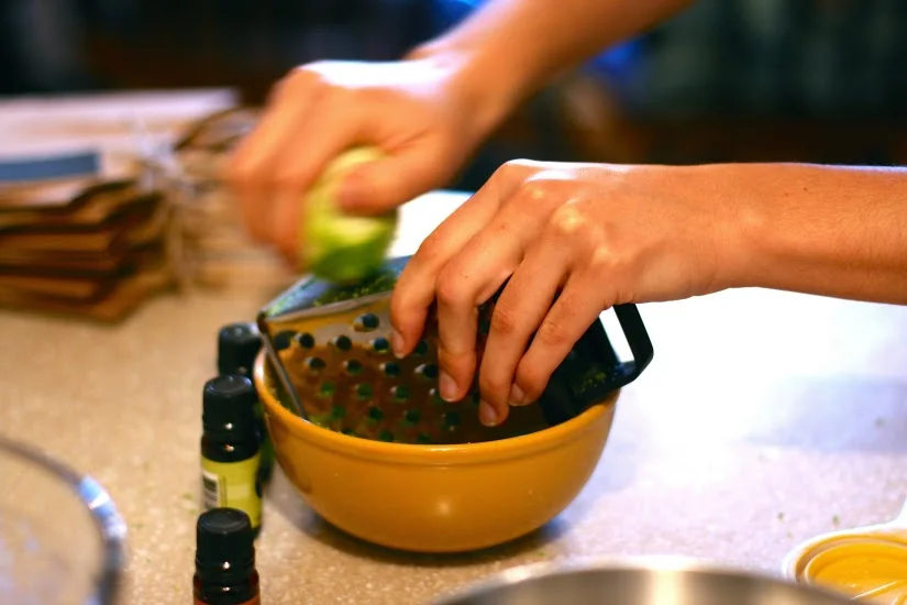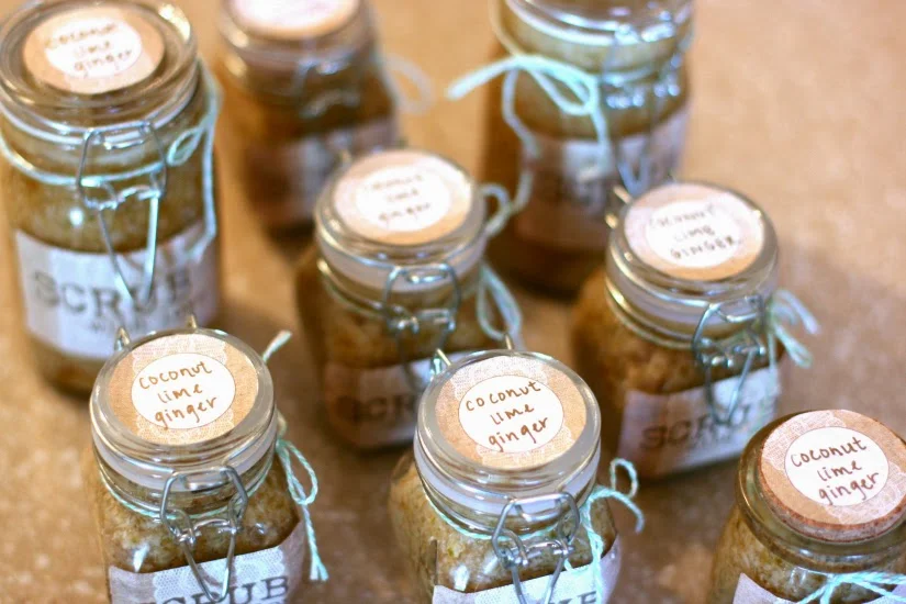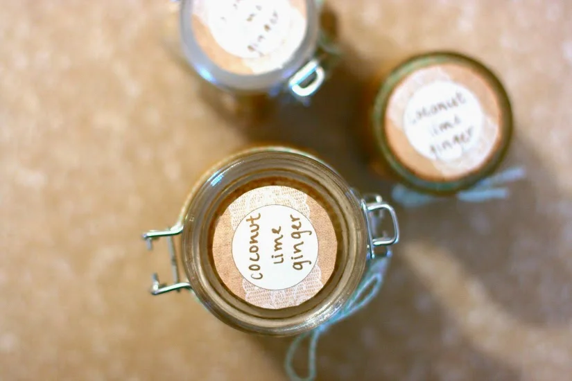 My sister Rachel has been getting crafty lately. I have practically no capacity in my own life for craftiness - no time AND no energy for such things. But Rachel has been baking, DIY-ing, fancifying her gift wrap, hand-lettering, the works. I am a bit jealous of all the creative energy she is able to exert. I would just like to have enough oomph in me to whip up a happy cocktail. But alas. Too much work. Haha this coming from a bit of a burned out new mom. But! Rachel is a senior in college, and I am really happy that she has found such a healthy way to blow off a bit of steam from school. Being creative is one of the best ways to cope with all that school pressure. And watching her be creative? That's been my way of coping with my exhaustion. I literally poured a cup of coffee and watched her make this DIY sugar scrub. No wait. I zested some lime, too.
