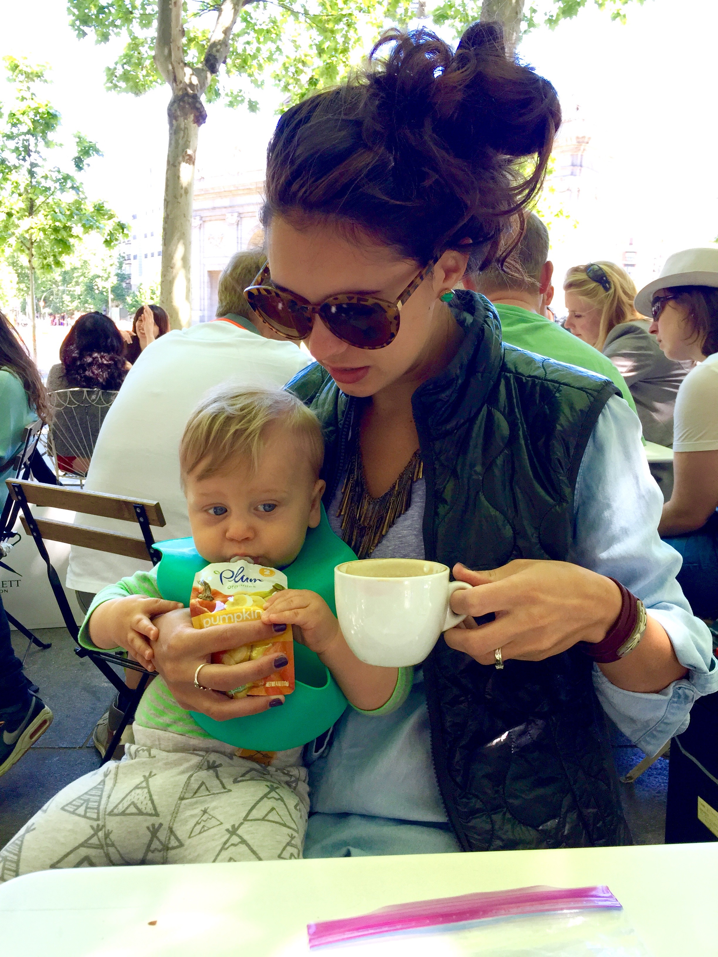 Breakfast outdoors in Madrid! That little man was tired, and so was I, so we cheered our cafe con leche/fruit pouch and enjoyed in silence. I will never forget it.