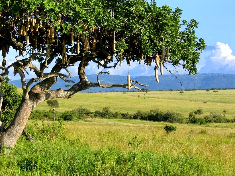 I call these sausage trees, but they are actually some kind of fruit tree. Not sausage at all.