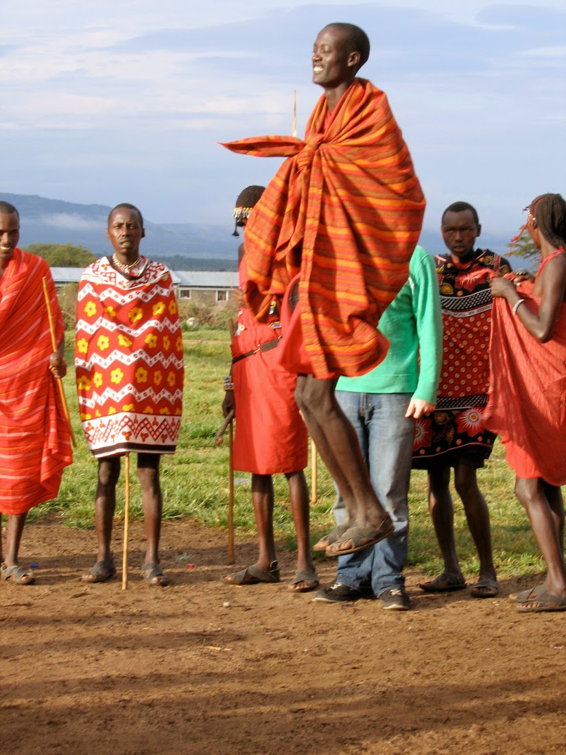 Although we spent the bulk of our time in Kenya in the village of Nyahururu, a gorgeously lush little hamlet tucked up in the mountains of the famed Thompson Falls, we did manage to take a trek down to the Masai Mara. This was where we had the incredible opportunity to visit with some of the Masai tribe. Can I just say that these people are suuuuuuper stylish? They're gorgeously tall, they can jump so high, and they just have so much inherent personal style. That might sounds weird, especially coming from someone like me (I have no authority on fashion), but you could just feel an incredible presence about these people. They stood with proper posture, proud of their heritage, adorned in the brightest colors and chiming jewelry. They were kind enough to show us around their village and share some of their tribe's traditions. Like how they start a fire from scratch and how to build a hut out of cow dung. Think about it - that's pretty impressive. And they jumped. THEY JUMPED SO HIGH.