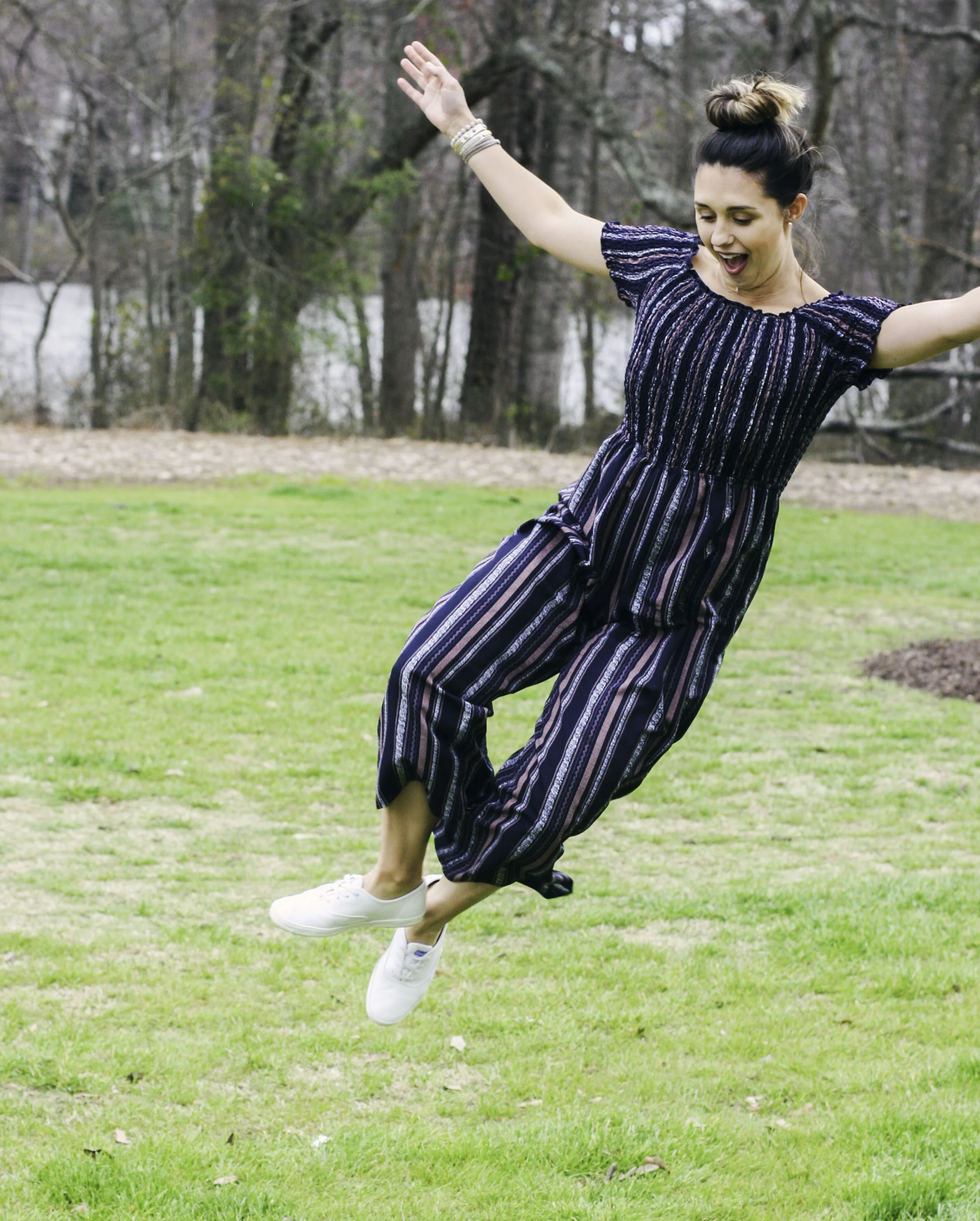 But even in the midst of this stage of life, I literally can jump for joy because I am a blessed, blessed woman. I have so much to be thankful for and I wouldn't trade one second of my circumstance for anyone else's. I truly wouldn't. These people are my joy! Now let's talk about this little jumper/romper situation.