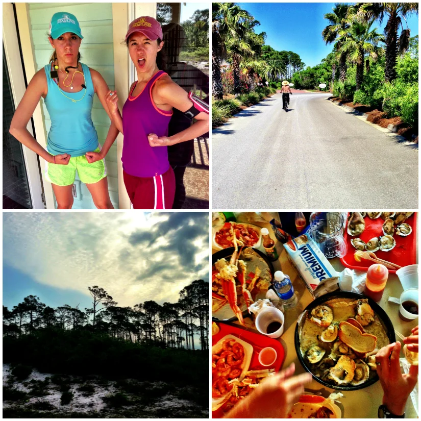 // Morning running club (Los cuatro corredores!) // My mother looking like a French bike lady (we've seen too many Hepburn movies) // Views and Seafood //