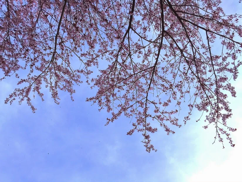 You can choose to look a lot of ways. You can choose to look down at your phone and see all the things you need to do on your iCal, all the people that you compare yourself to on Instagram, or all the time you can waste play Candy Crush. Or you could choose to look around you, and see the many many things you "need" to do - laundry, to-do lists, cleaning, work email, etc. Or you could choose to look up. Look up and notice the sky. Feel the quietly warming air. Notice the birds that are soaring freely above. Notice the Japanese Maple blooming right before your eyes.