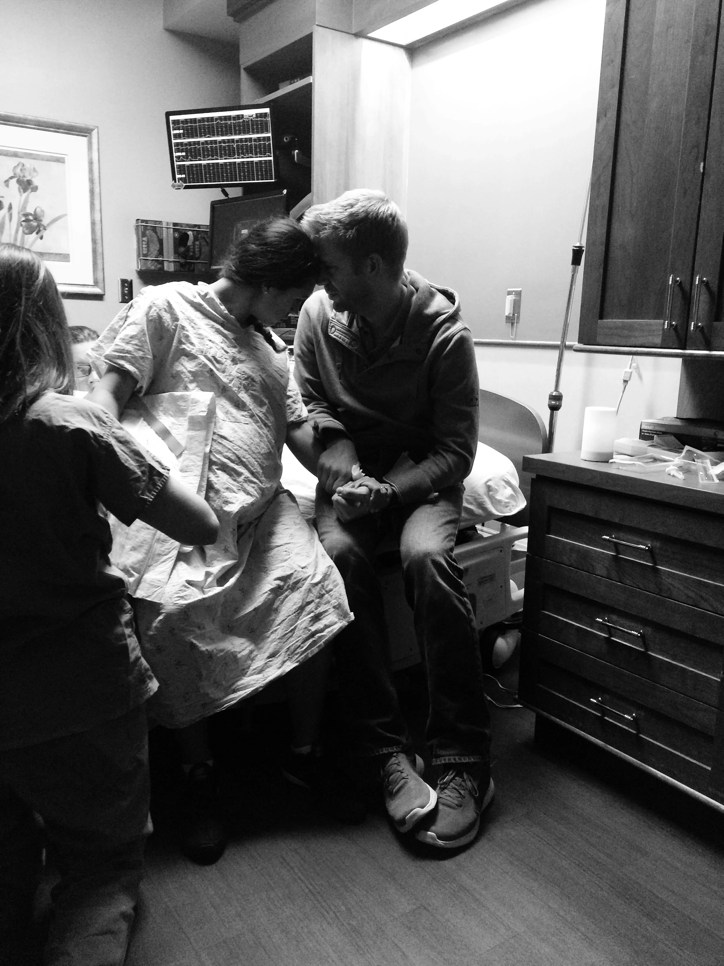 And then again, and again, and again. They started coming relatively quick, every 10 minutes or so. He celebrated with me in that waiting room. By the time we actually got into the room where the midwife would see us, I was having regular contractions and they were real.
