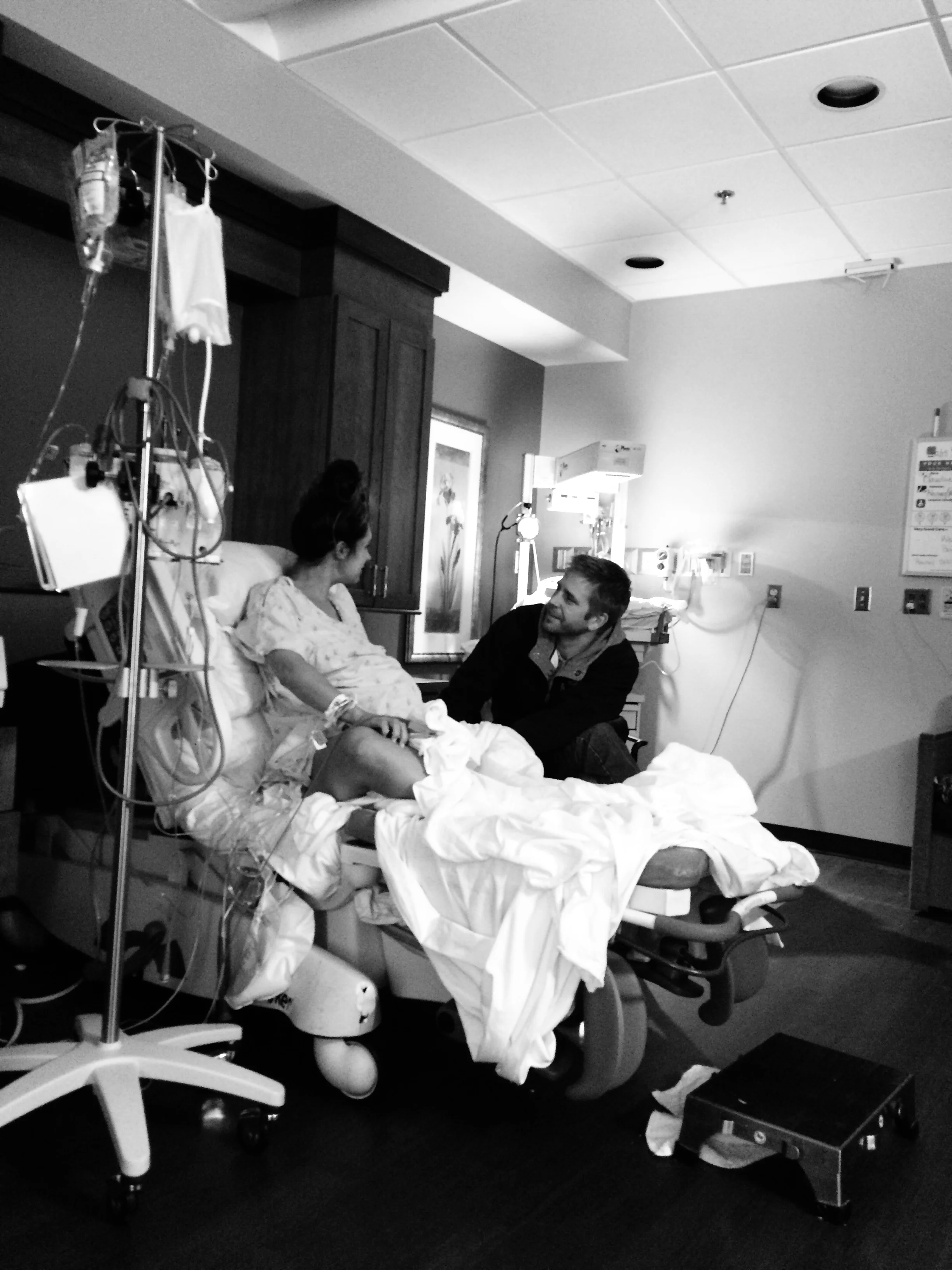 When I checked into the hospital, there were Christmas trees everywhere. Little white lights and wreaths on every desk. I remembered my friend Elizabeth's labor story, about how she took one final pregnancy photo when she checked into the hospital, and I said, "Stevie! Will you take my picture? The last picture of Daxton inside of me?!" And he did. That was really special. I knew things would get really intense before it was all over (ha, little did I know how intense), and I wanted to remember this moment of excitement and joy and tiny little white lights decorating this memory.