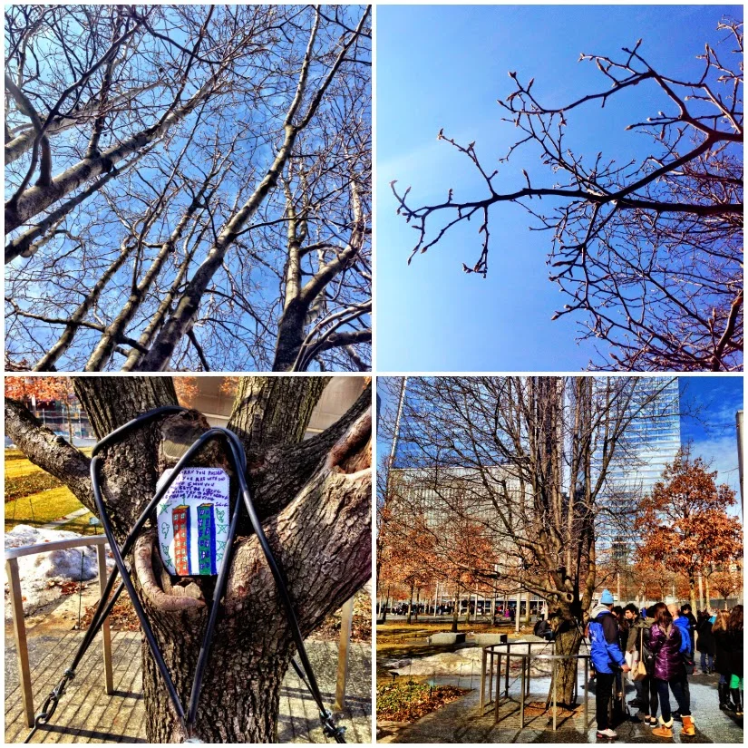 This is an incredible story. The callery pear tree you see (above), was originally planted in the 1970's in the vicinity of buildings 4 and 5 in the World Trade Center complex. The tree was severely damaged after the 2001 attacks and found in a pile of rubble, blackened trunk, snapped roots, probably completely charred and lifeless. The tree, 8 feet tall at the time, was transported and replanted in Van Cortlandt Park in the Bronx. The park's staff nursed the tree back to health and today, it stands over 30 feet tall in its newly replanted location at the 9/11 Memorial site. Every day the tree is freshly decorated with artwork, prayers and small tokens of gratitude by visitors of the park. It also comes with it's own armed guard. Seriously. And this callery pear stands vibrantly on its own amongst hundreds of white oaks in the plaza as The Survivor Tree.